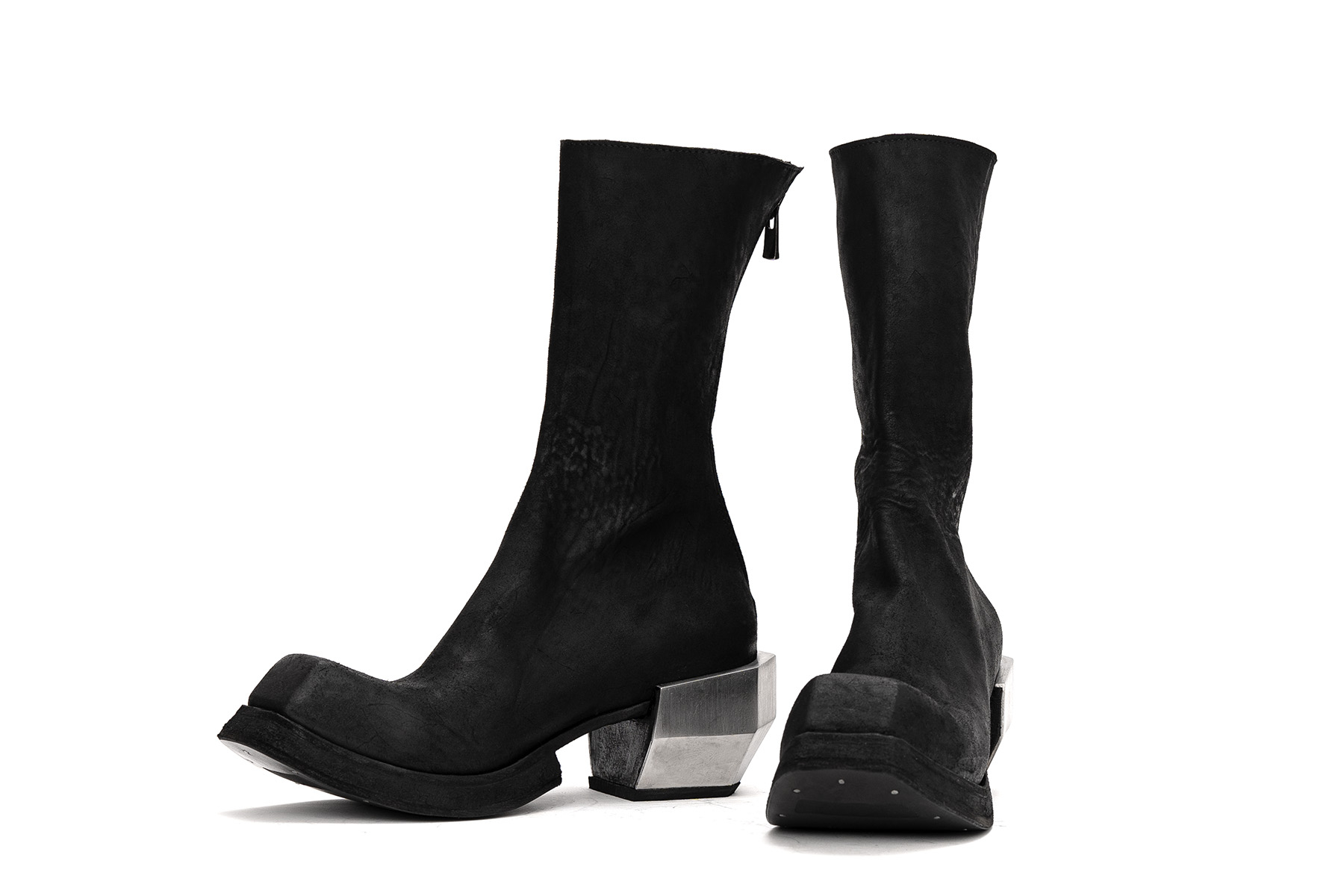 – Mid-height heels leather boots